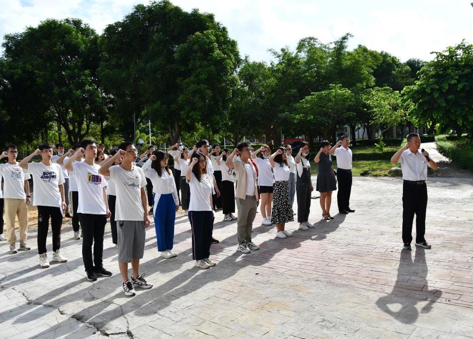 仪式上,谢仕义首先带领毕业生党员紧握右拳,面向党旗重温入党誓词:“我志愿加入中国共产党,拥护党的纲领,遵守党的章程,履行党员义务,执行党的决定,遵守党的纪律……”铮铮誓言回响在二教上空。