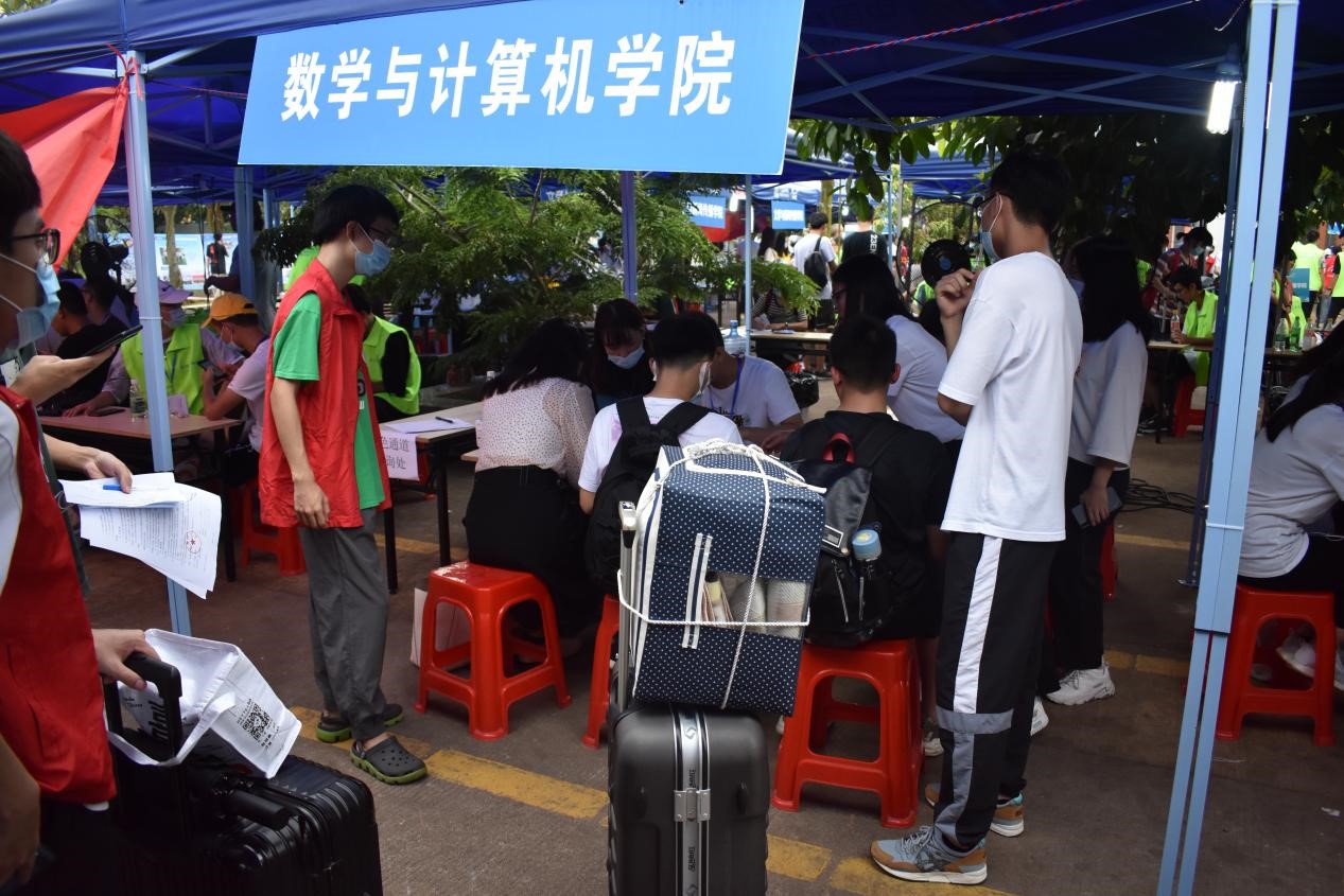 拿出录取通知书,扫一下条形码,线上线下完成新生注册、绿色通道申请、财务缴费、宿舍选择等系列流程,使今年迎新工作便捷高效,十分有序。