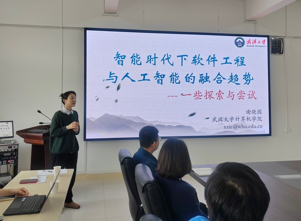 1月10日上午,应学院邀请,武汉大学计算机学院教授谢晓园同师学院生进行了一场深度学术交流。在湖光校区明德楼A1-405会议室,谢晓园教授作题为《智能时代下软件工程与人工智能的融合趋势—一些探索与尝试》的学术报告。报告会由院长彭小红教授主持,计科系主任余应淮、软工系主任陈小瀚及相关专业师生50余人参加了此次报告会。