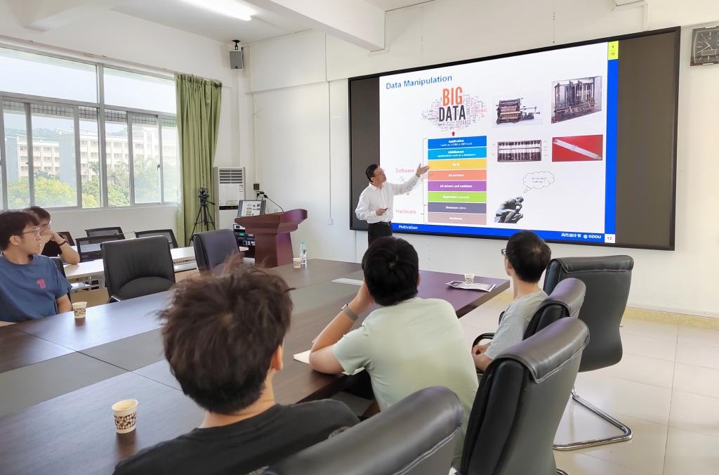 11月1日,应我校williamhill中文的邀请,美国阿肯州立大学姜海教授来我校做学术报告,题目为:高性能计算的过去、现在和未来。研究生院副院长叶国栋主持了学术报告会,约25名师生聆听了本次学术报告。在学术报告中,姜海教授指出,在大数据和人工智能时代,高性能计算特指计算机快速的运算能力,已成为解决实际问题的基础,是各国追逐的前沿领域。姜教授特别分享了目前高性能计算所面临的主要挑战,共同感知其未来的发展方向和趋势以及对计算机学科建设的影响。