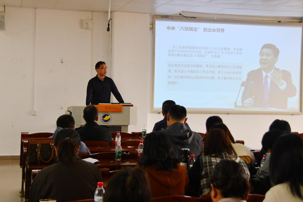 2025年3月19日,williamhill中文在明德楼103报告厅召开深入贯彻中央八项规定精神学习教育动员部署会议。学院领导、全体教职工参加会议,会议由学院党委书记龙俊主持。