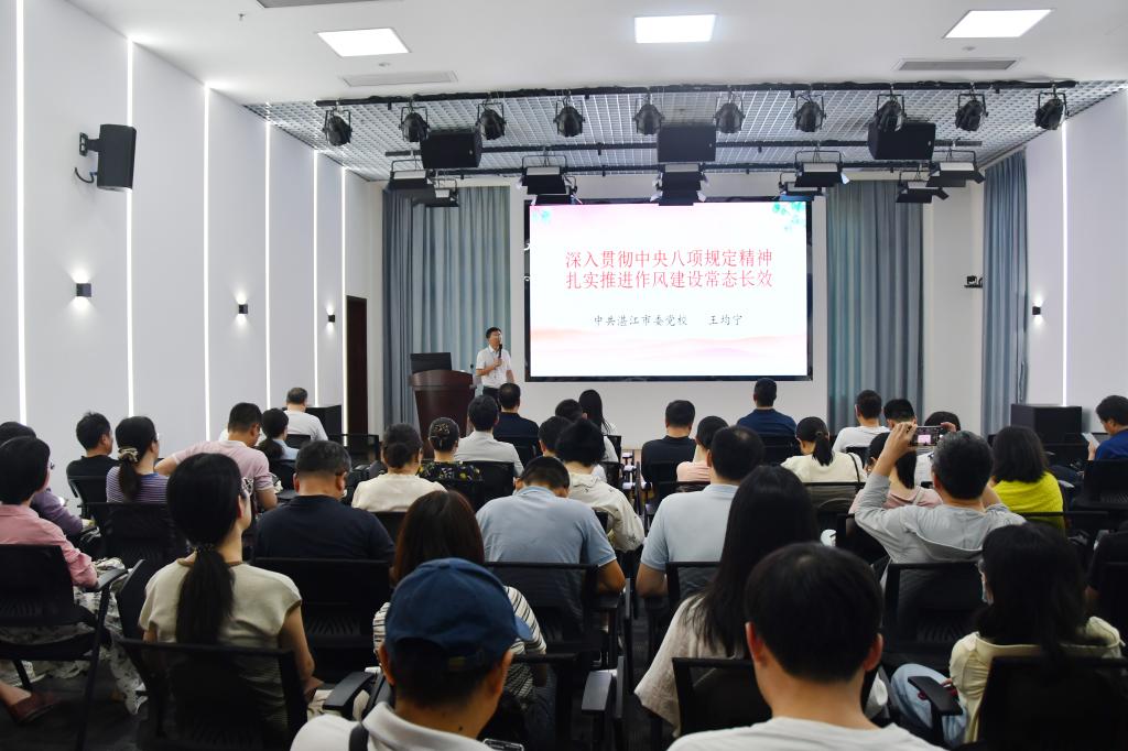 为深入贯彻中央八项规定精神学习教育,加强学院纪律作风建设,4月23日,我院组织党员干部赴湛江市委党校开展了专题学习培训暨“深入贯彻中央八项规定精神学习教育,加强纪律作风建设”主题党日活动,学院领导、各系(部、中心)正副主任以及全体教职工党员80多人参与了此次培训。