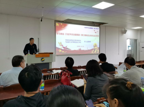 10月28日下午,williamhill中文党委在第二教学楼A103会议室召开《习近平谈治国理政》第三卷宣讲报告会。本次宣讲报告会由学院党委书记谢仕义主持,马克思主义学院党总支书记、学校党委理论宣讲团副团长宋玉忠教授主讲,学院全体教职工参加。