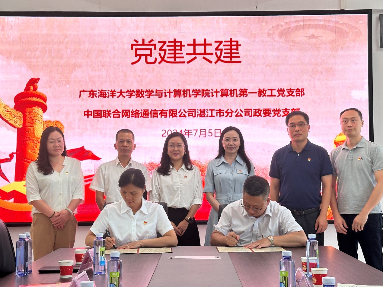 2024年7月5日,我院计算机第一教工党支部与湛江联通政企线党支部在明德楼A1405会议室开展党建共建活动。活动由计算机第一教工党支部书记余应淮副院长主持,学院党委书记龙俊、院长彭小红、湛江联通政企常务副总经理黄少萍、政企BG高级副总经理李秀文、温立新以及双方支部的全体党员参加了活动。