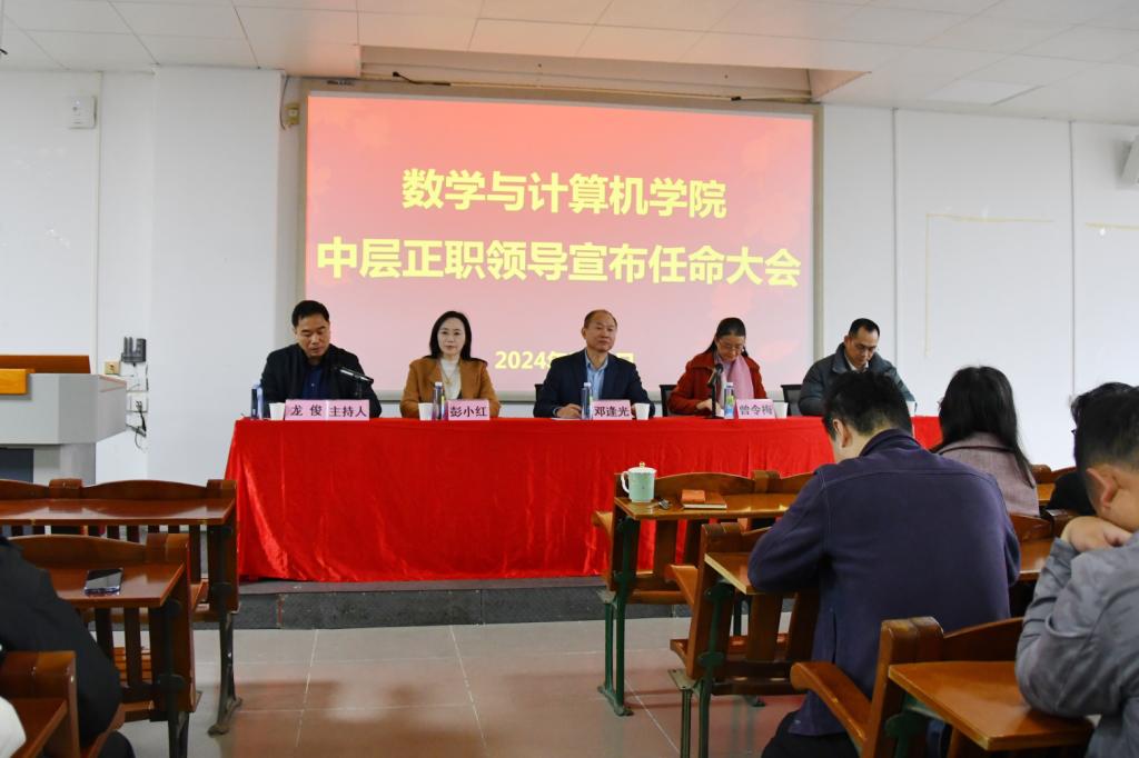 曾令梅宣读了学校党委对龙俊、彭小红、农康同志的任职决定文件:龙俊同志任williamhill中文(软件学院)党委书记;彭小红同志任williamhill中文(软件学院)院长;农康同志任williamhill中文(软件学院)正处级辅导员、党委副书记、纪委书记。龙俊、彭小红、农康同志分别作了任职表态发言。