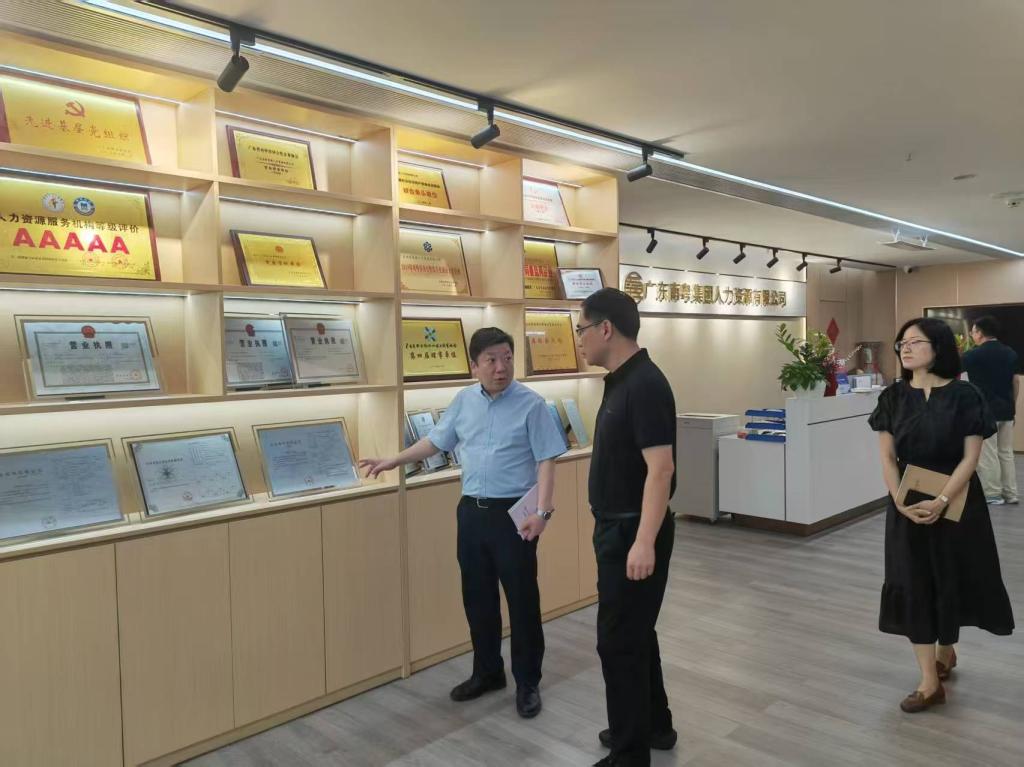 龙俊在公司副总经理宋剑的陪同下,参观了公司各业务部门。宋剑向龙俊介绍了南粤集团人力资源有限公司的发展历程,并对公司的业务开展和经营等情况作了详细介绍。龙俊介绍了学院学科专业建设、师资队伍、社会服务、人才培养、毕业生实习及就业工作等情况。双方围绕合作开展人才培养、产教融合、校园招聘、毕业生实习就业推荐等进行了深入交流,并就6月初联合组织企业开展williamhill中文2025届毕业生“百日冲刺促就业”线上招聘专场达成了初步合作意向。