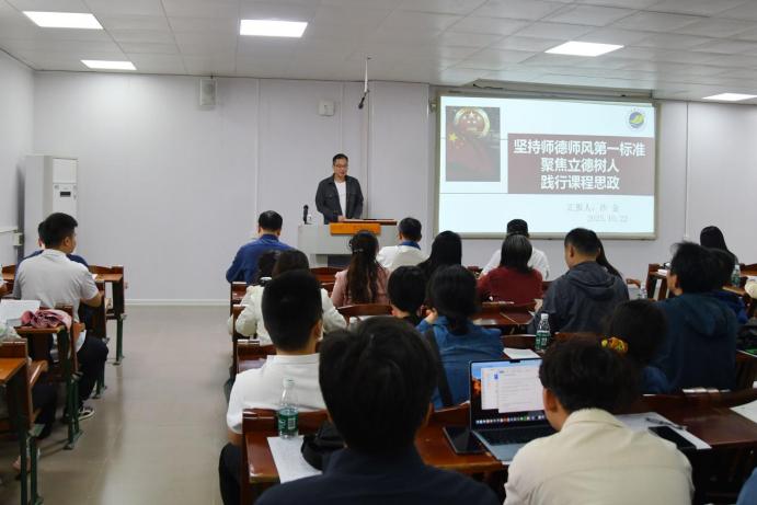 首先,大会邀请了机械工程学院沙金副教授作题为“坚持师德师风第一标准 聚焦立德树人 践行课程思政”的主题讲座。沙金老师结合自身实践,从师德师风内涵解读、违反师德典型案例警示、课程思政与思政课程的区别辨析、教学痛点与应对策略等方面展开分享,既有理论深度,又具实践指导性。他强调,课程思政是落实立德树人的关键路径,教师需将师德要求融入教学各环节,以“润物细无声”的方式培育学生价值观。