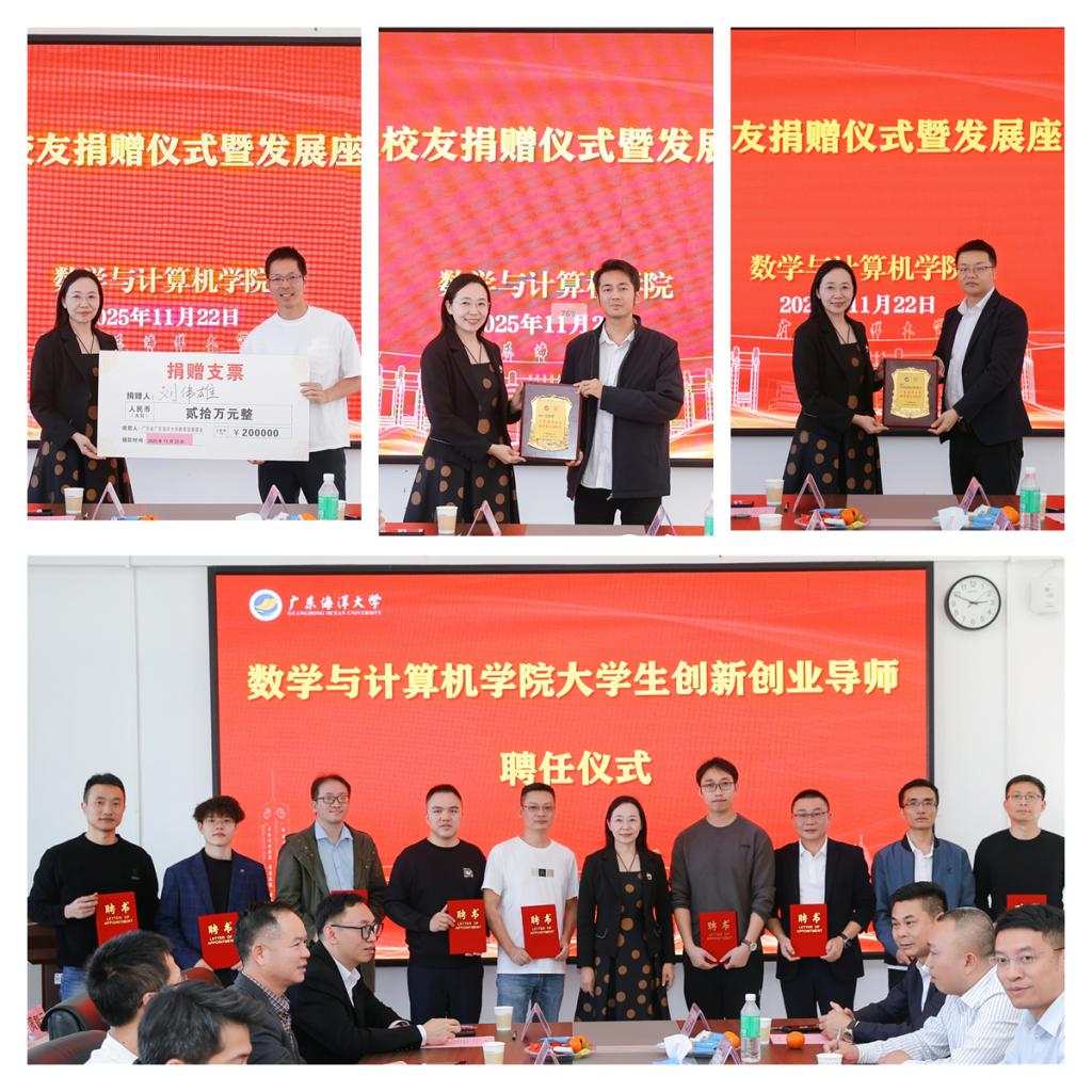接下来的捐赠仪式环节气氛庄重而热烈。为表彰先进、传递爱心,学院分别为校友伍世奇及中软国际颁发捐赠荣誉牌匾,以感谢他们对学院发展的慷慨助力与无私奉献。更令人动容的是,校友刘伟雄在返校当天,得知学院发展需求后,当即捐赠20万元,用实际行动诠释了“饮水思源、反哺母校”的赤子情怀,现场响起阵阵热烈的掌声。