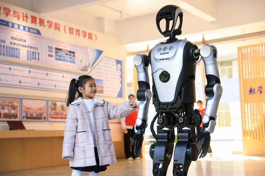 “欢迎校友回家!”学院的智能机器人01化身“暖心向导”,凭借矫健的外形和灵活的互动能力,成为接待现场的“小明星”。它不仅能识别校友身份并主动送上问候,还能熟练介绍学院近年来的发展成果、校园布局及校庆活动安排,更会俏皮地与校友们进行互动问答,现场笑声不断。一位毕业十年的校友笑着说:“没想到现在学院的智能化发展这么快,这个机器人既专业又可爱,一下子就拉近了我们和学院的距离。”