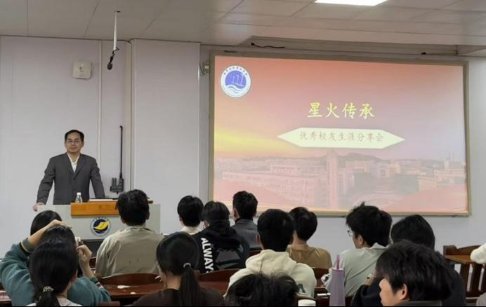 农康在致辞中,对林瑞柠、陈镕浩两位优秀校友的返校分享表示衷心感谢,并对他们在各自领域取得的卓越成就致以高度赞赏。他寄语在校生,既要以校友为榜样,扎实掌握专业理论知识,筑牢学术根基;也要主动探索行业前沿,在实践中提升创新能力,明确成长方向,不负韶华与期望。