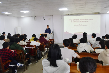 为深入学习、宣传并贯彻党的二十届四中全会精神,引导青年学子坚定理想信念、明晰使命担当,2025年12月15日下午,williamhill中文党委书记龙俊深入基层学生班级,为2025级信管1251班、信管1252班的同学们召开了一场以“学习党的二十届四中全会精神,努力成为堪当重任的时代新人”为主题的班会。班会由班主任冼远清老师主持,全体同学参与。