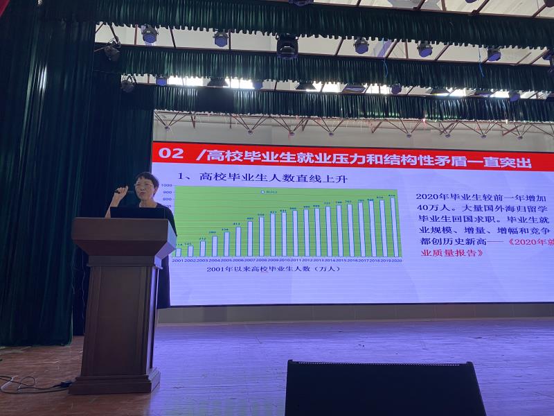 周荣伟副书记从重大疫情期间就业工作“六稳六保”政策入手,结合《2020年中国大学生就业质量报告》,为同学们分析了高校毕业生一直以来严峻的就业形势和结构性矛盾。她指出,重大疫情拉低了我国经济发展速度,减少了就业机会,延缓了就业活动,阻碍了同学们出国留学。但数字经济的快速发展,广东产业优化升级为IT类毕业生提供了新的发展空间。疫情期间“云招聘”等创新就业模式、国家为拓宽就业渠道提供的种种优惠,为同学们就业带来了新的机遇。在新的一年就业工作中,学院将构建更加全面的就业工作体系,开展更加精细的就业指导,建立更加开放的就业市场,为同学们提供更加全面立体的就业服务。她对同学们在认清新形势,树立新信心,抓住新机遇,用好新政策,实现新发展上提出“五个新”的希望。