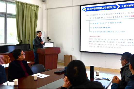 同时,彭小红对本学期期末和寒假的工作做了部署安排:一是按计划完成学期末的课程考试、成绩录入工作;二是按学校规定完成教学科研绩效的申报工作;三是在放寒假前,完成对六个专业的2021版人才培养方案的专家论证工作;四是严格按学校要求做好放寒假的各项工作,特别是实验室安全、科技团队安全、教职工和学生假期外出旅游、探亲、学习安全和意识形态等工作。