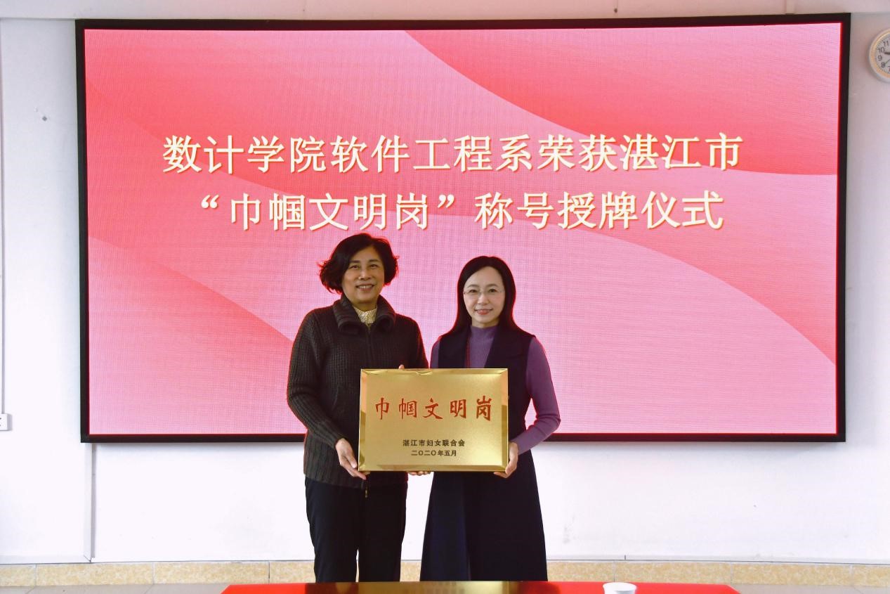 1月7日上午,我院在第二教学楼A座405会议室隆重举行湛江市“巾帼文明岗”授牌仪式,校工会常务副主席李茵、我院党委书记谢仕义教授、院长彭小红教授、副书记周荣伟、软件工程系全体女教工等出席了仪式。