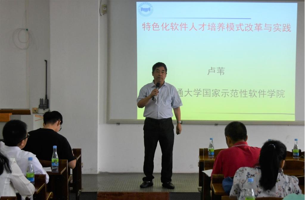 在“特色化软件人才培养模式改革与实践”报告会上,卢教授首先以建设特色化示范性软件学院的指导思想、建设目标、建设原则、建设任务为切入点,介绍了特色化软件人才培养模式的改革方法。最后,以北京交通大学软件学院为例,介绍了学院的管理体制与运行机制,并从人才培养目标、培养规格、课程体系、教学模式、教学方法、国际化人才培养途径及师资队伍等方面,全面阐述了学院在特色化软件人才培养模式的改革实践。