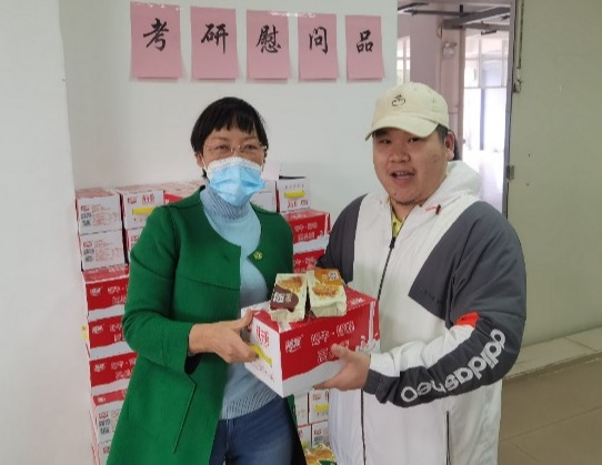 慰问会最后,周荣伟为学生们发放了牛奶、饼干等慰问品。同学们感谢学院的关爱,纷纷表示将卯足干劲,脚踏实地,迎难而上,争取佳绩,为学院争光。